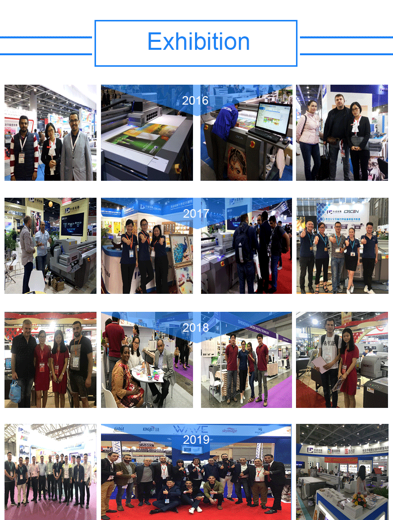 DG-2513 med storformatsutskriftsstorlek 2,5mX1,3m, möjliggör produktion av stora mängder. Det är automatiskt så att det är lätt att lära sig och använda. Skrivhuvudets baskort är OEM av professionell fabrik, högprecisionsprocess. Utrustad med EPSON i3200-utskrift huvudet, som har hög utskriftshastighet. 3,8 pl bläckstorlek, med hög upplösning, kan göra utskriftsmönstren mer realistiska och sanna.